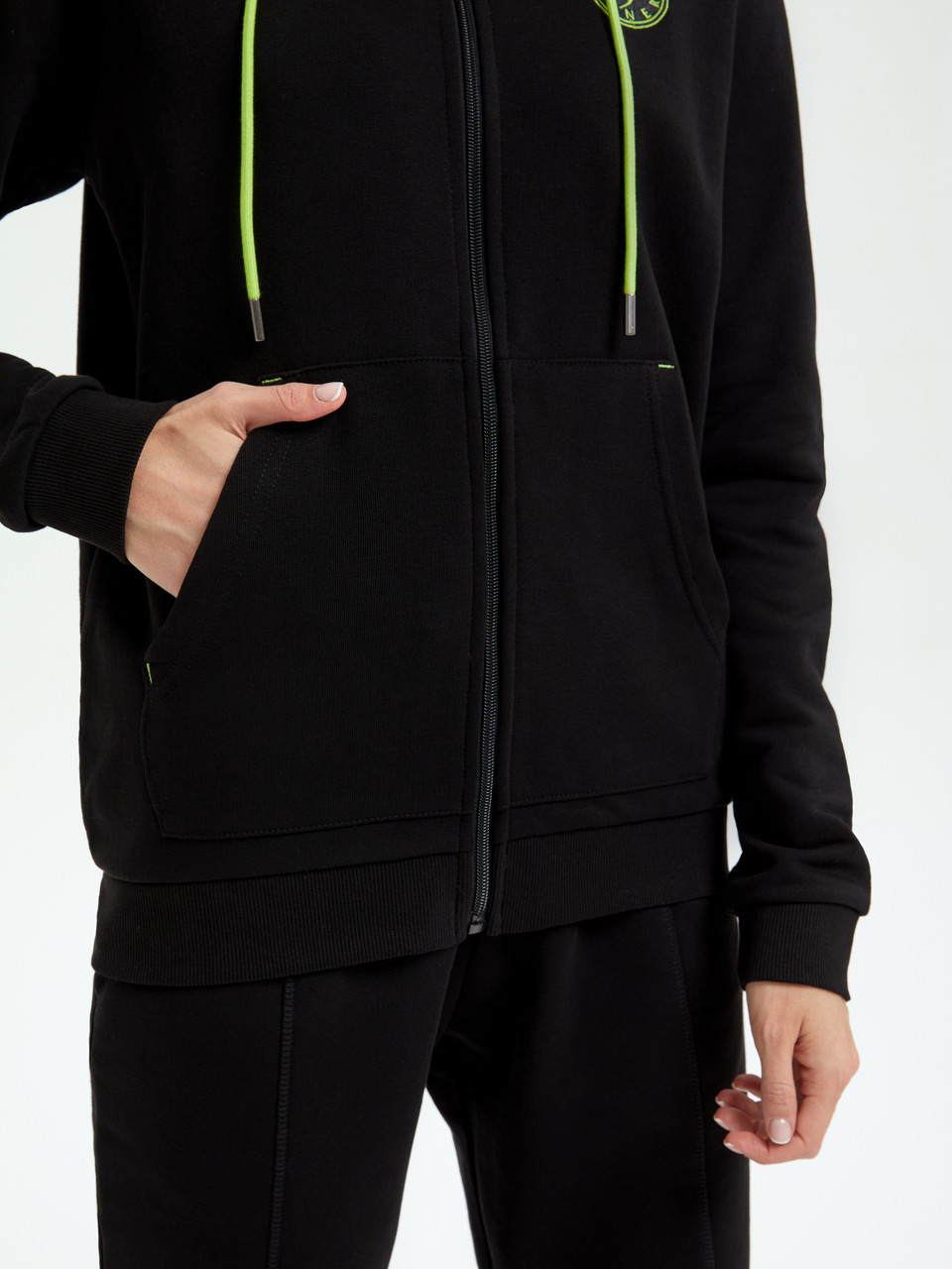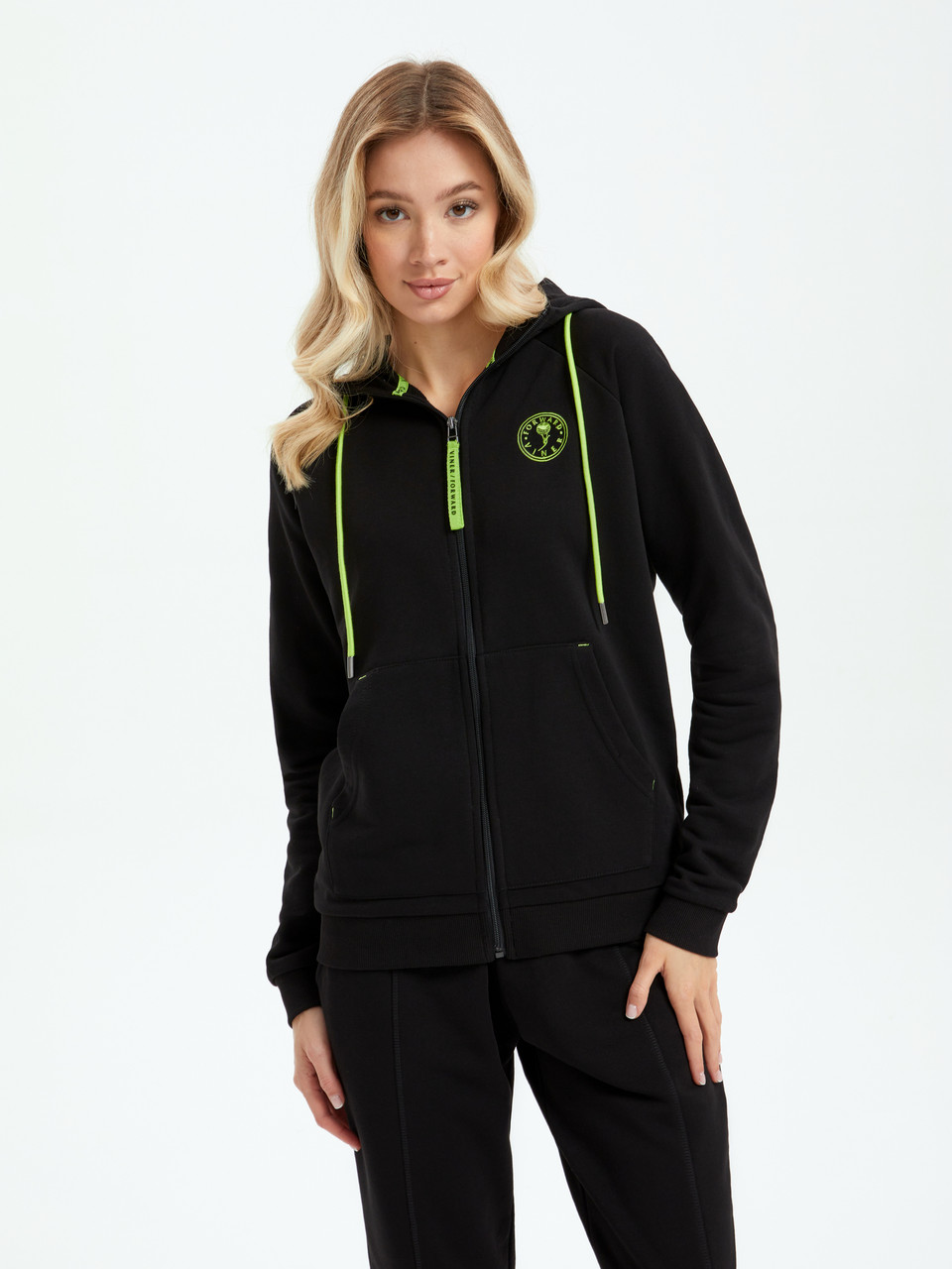 Спортивный женский костюм Forward By Viner, цвет черный с салатовыми полосками состоит из олимпийки на молнии и брюк джоггеров. Этот летний комплект одежды обеспечит комфорт и удобство во время тренировок, прогулок или занятий спортом на свежем воздухе. Костюм выполнен из качественных материалов, которые обеспечивают отличную вентиляцию и хорошую воздухопроницаемость.